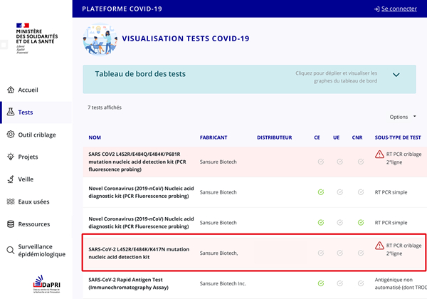面对法国严重的疫情传播现状,根据法国卫生部2021年12月17日更新的“SI-DEP”指南,金年会jinnianhui生物迅速反应、及时追踪、快速研发,以精准、高质、合规为要求,10天内成功研发出该突变检测试剂盒,并顺利通过法国卫生部备案许可,可紧急用于法国卫生部指南要求下的奥密克戎变异株初步判断。