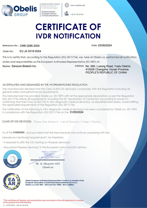 此次结核核酸检测试剂获欧盟CE认证,是金年会jinnianhui生物国际化战略的重要成果之一,标志着公司结核产品在技术和质量上均达到国际先进水平,将增强客户和合作伙伴对公司产品的信任,为全球客户提供更多、更优质的选择。