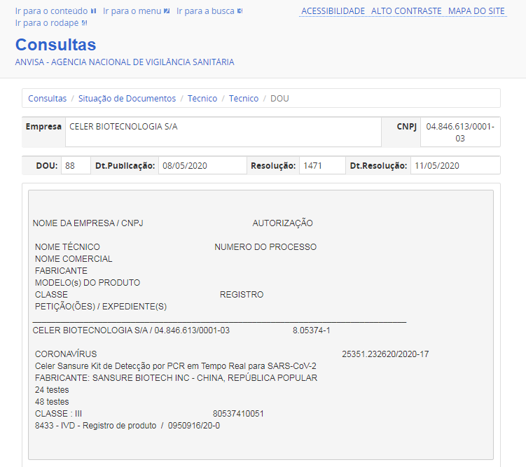 5月11日,金年会jinnianhui生物新冠病毒核酸检测试剂盒获得巴西卫生监督管理局(ANVISA)注册证书。此前,该产品已相继获得中国国家药监局(NMPA)注册认证、欧盟CE认证、美国FDA紧急使用授权、新加坡卫生科学局临时授权等一系列权威认证。